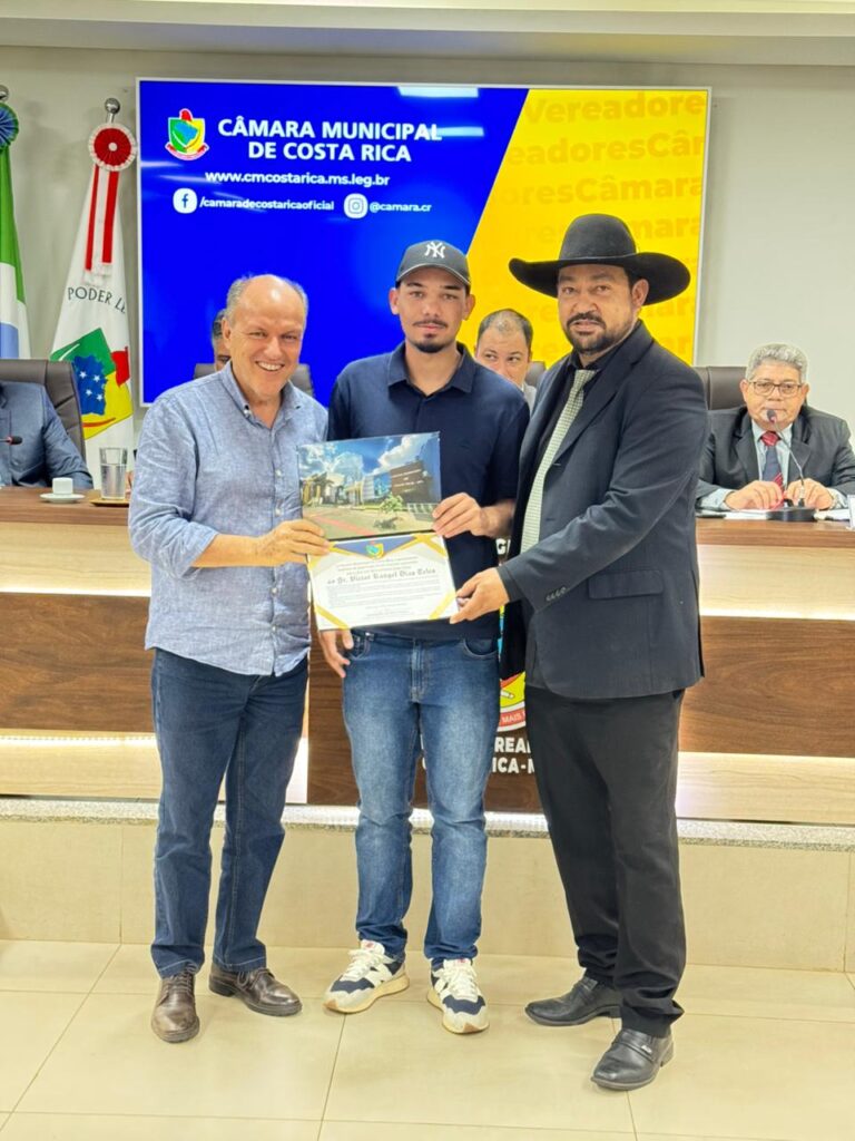 Com esta homenagem, os vereadores de Costa Rica expressam seus votos de reconhecimento e parabéns a Victor Rangel Dias Teles pela iniciativa bem-sucedida e pelo compromisso em promover eventos que unem esporte, cultura e solidariedade.