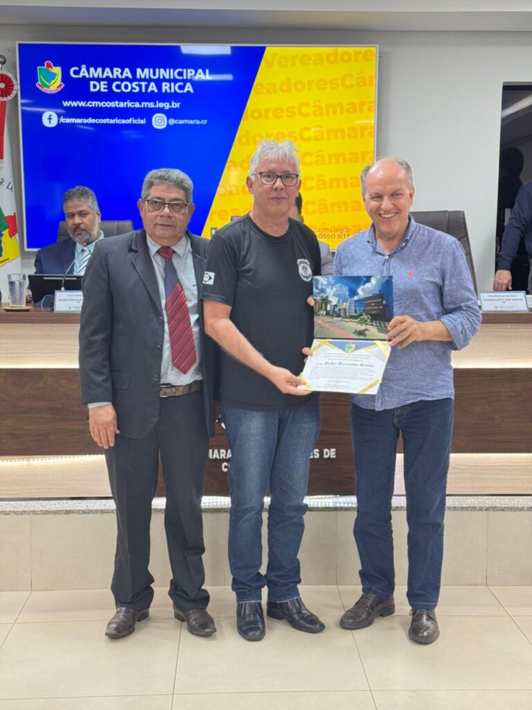A homenagem é de autoria do vereador e primeiro-secretário Jovenaldo Francisco dos Santos, Juvenal da Farmácia que destacou a importância da trajetória do homenageado para a segurança pública e o fortalecimento das instituições de justiça em Costa Rica-MS.